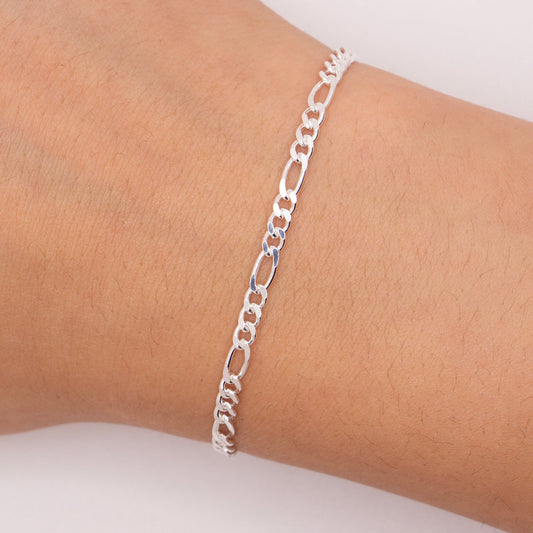 "Magnolia" Sterling Silver 3mm Diamond-Cut Figaro Chain