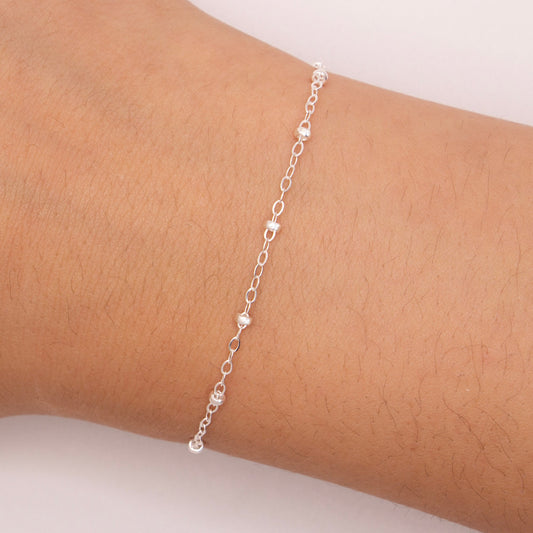 "Charm" Sterling Silver 1mm Cable Chain with 2mm Beads
