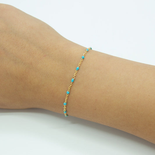 Blue Enamel Beads Gold Filled 1.5mm Cable Chain