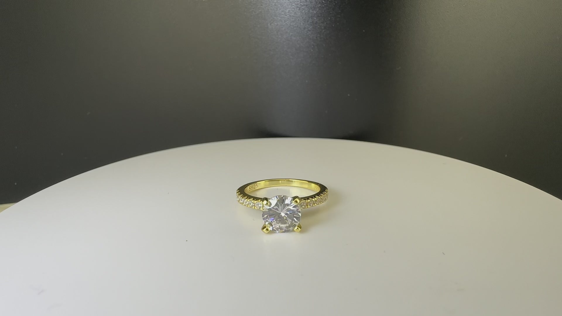 Solitaire Pave 18k Gold Vermeil Engagement Ring