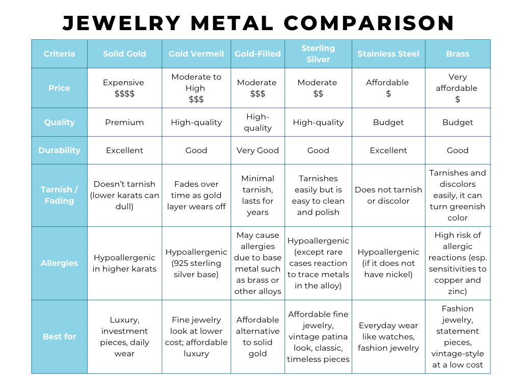 - Gold-Filled: Resistant to tarnish.